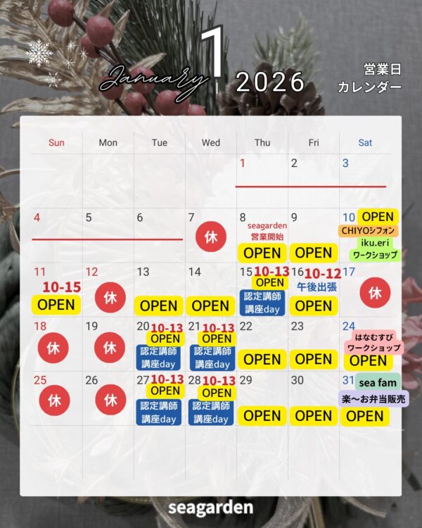 🌷2026年もSeaGardenは、 癒しと学びの時間をたっぷりご用意しております🌸🩷