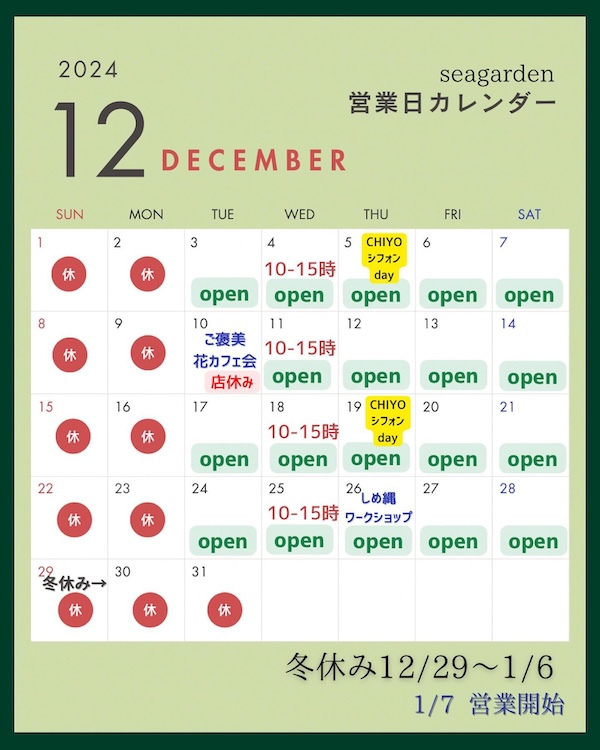 新年もseagardenでお会いできるのを楽しみにしています✨☺️
